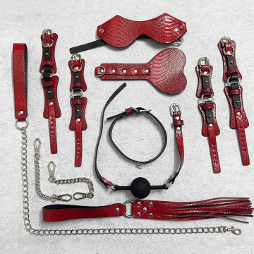 • Bộ Bạo Dâm 10 Món Vân Da Màu Đỏ Nồng Cháy